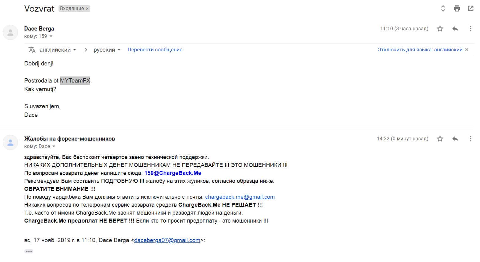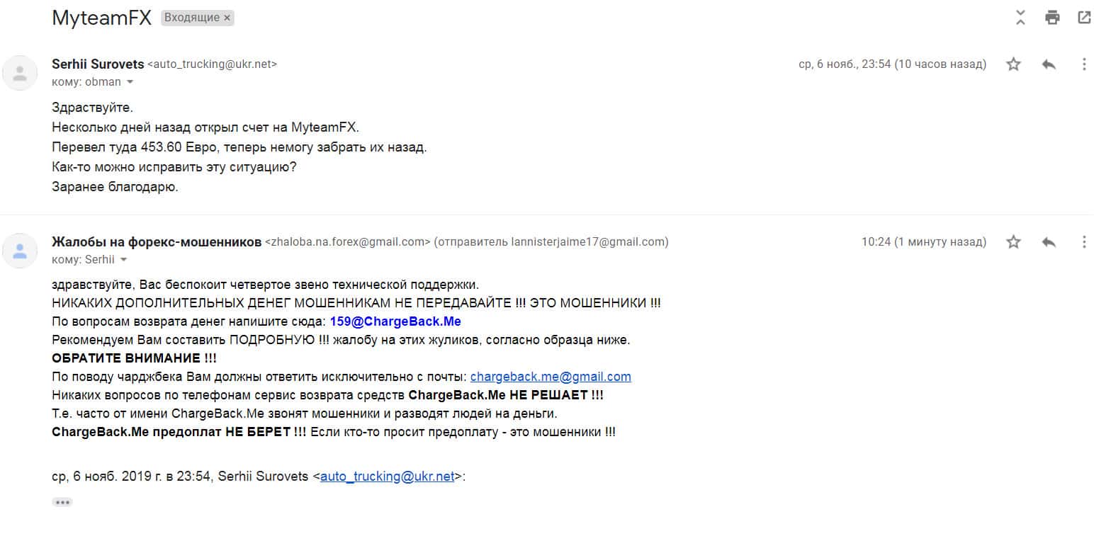 - Очередной пострадавший клиент мошеннической конторы MYTeamFX