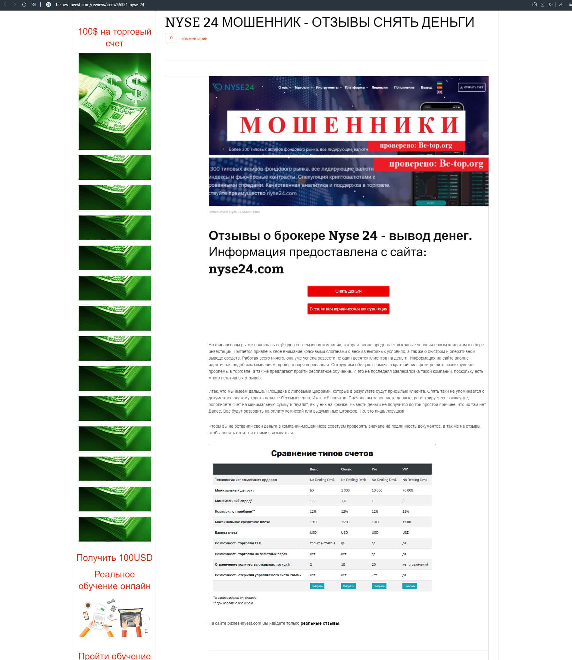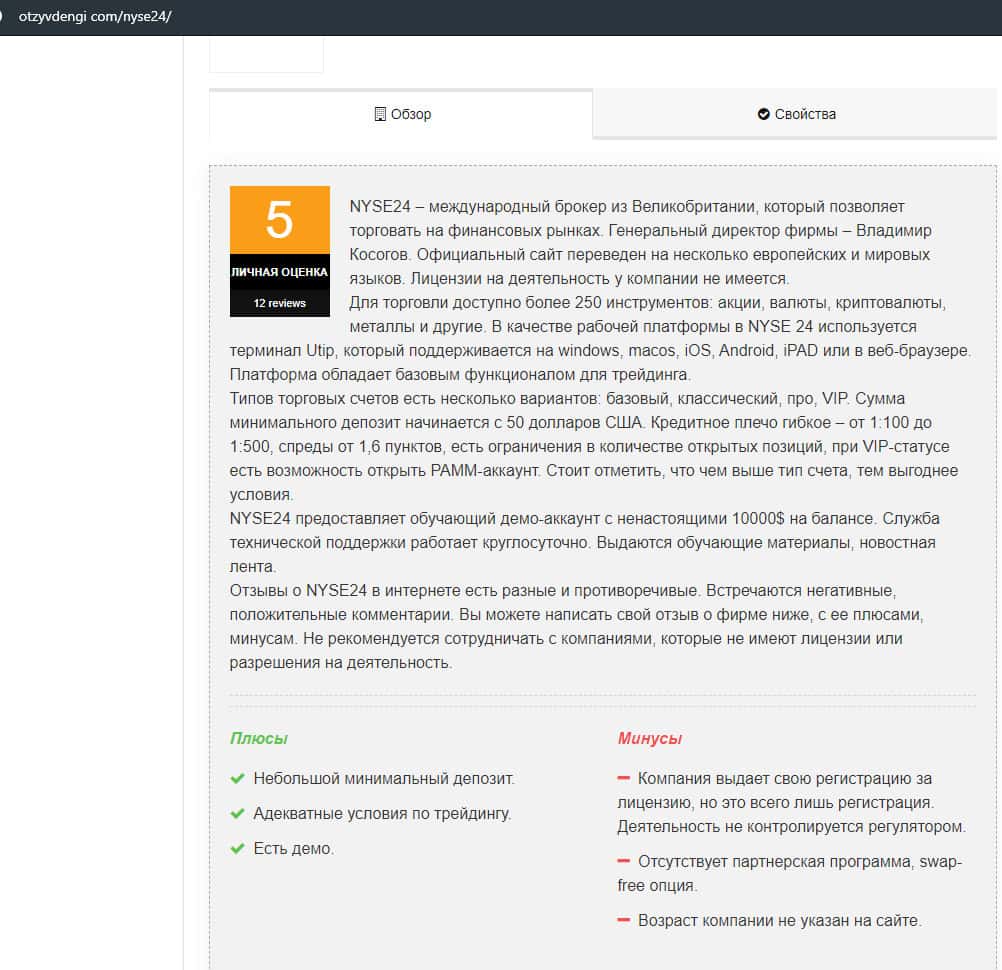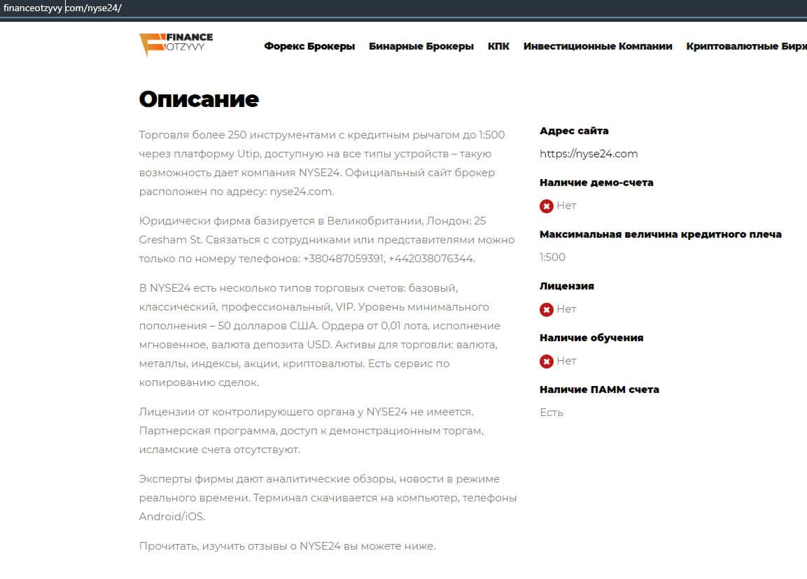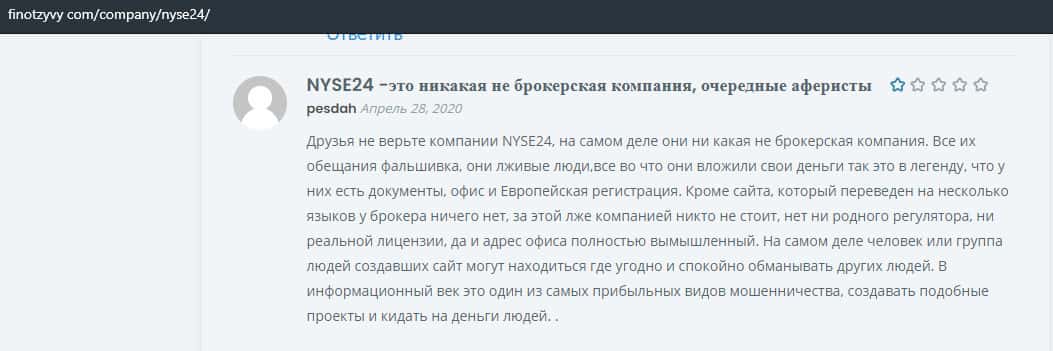 Далее вы можете ознакомиться с информацией, касательно шулерского лохотрона NYSE24, где указывают на определенные моменты, а именно почему не стоит с ними связываться.