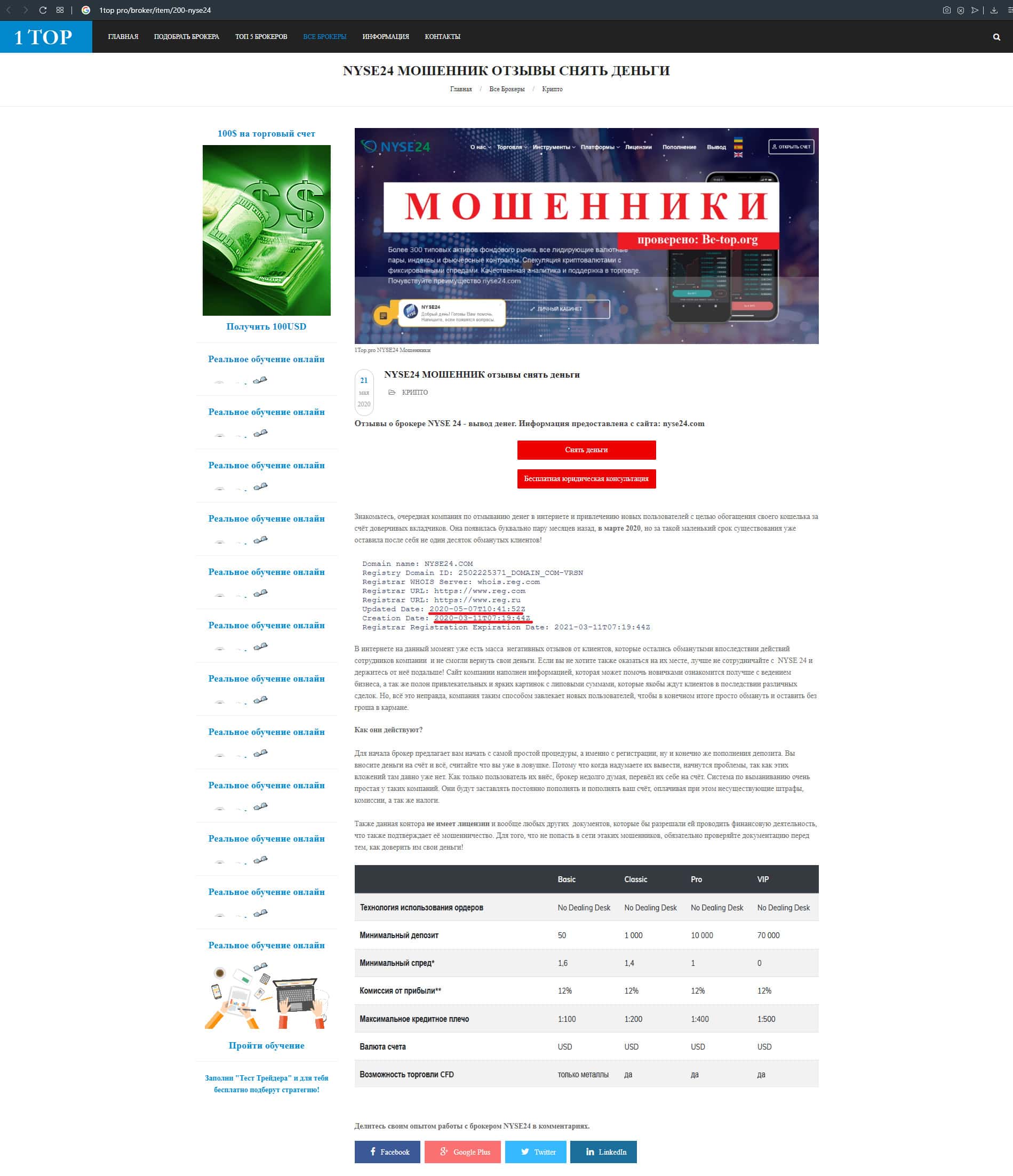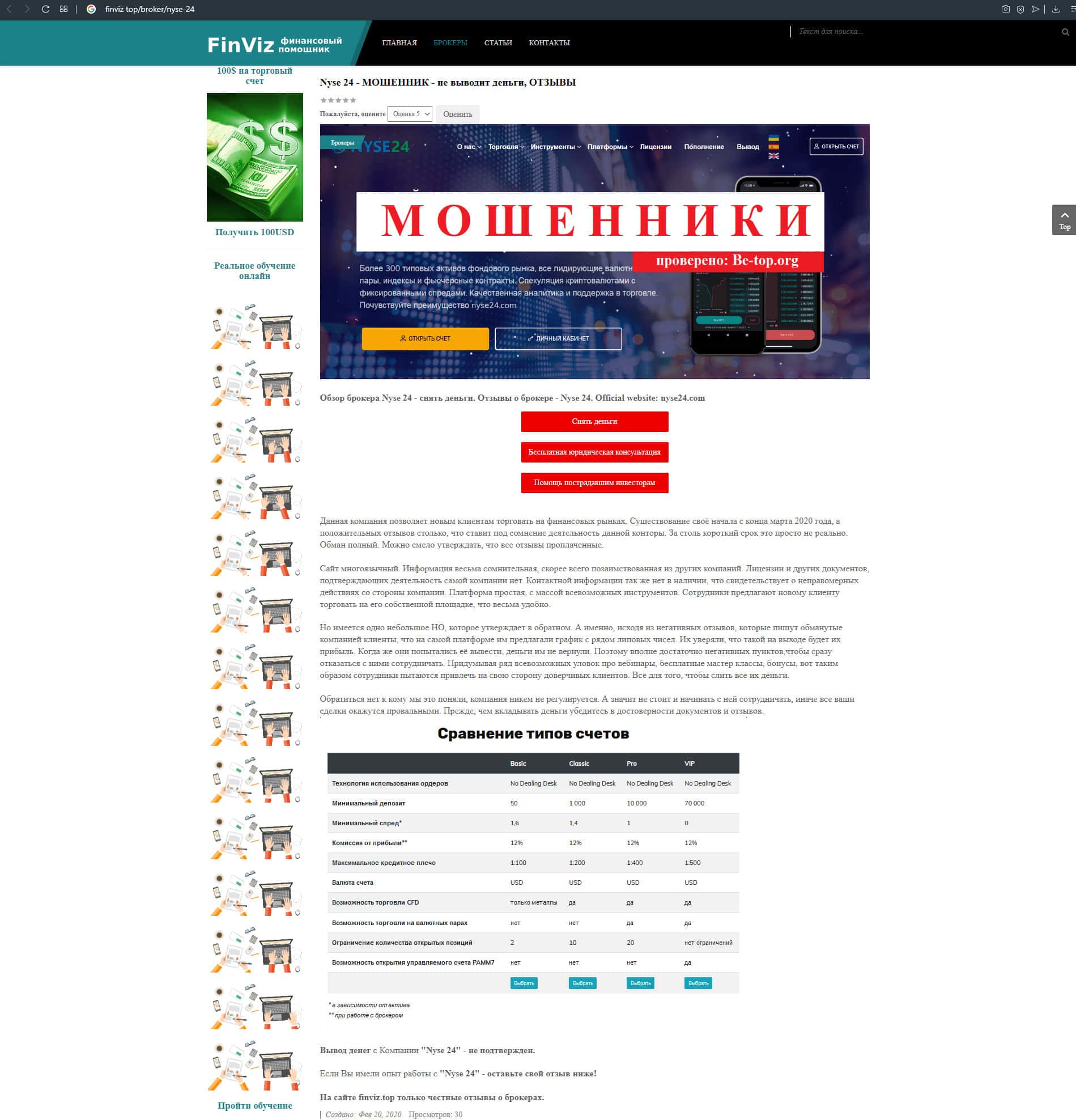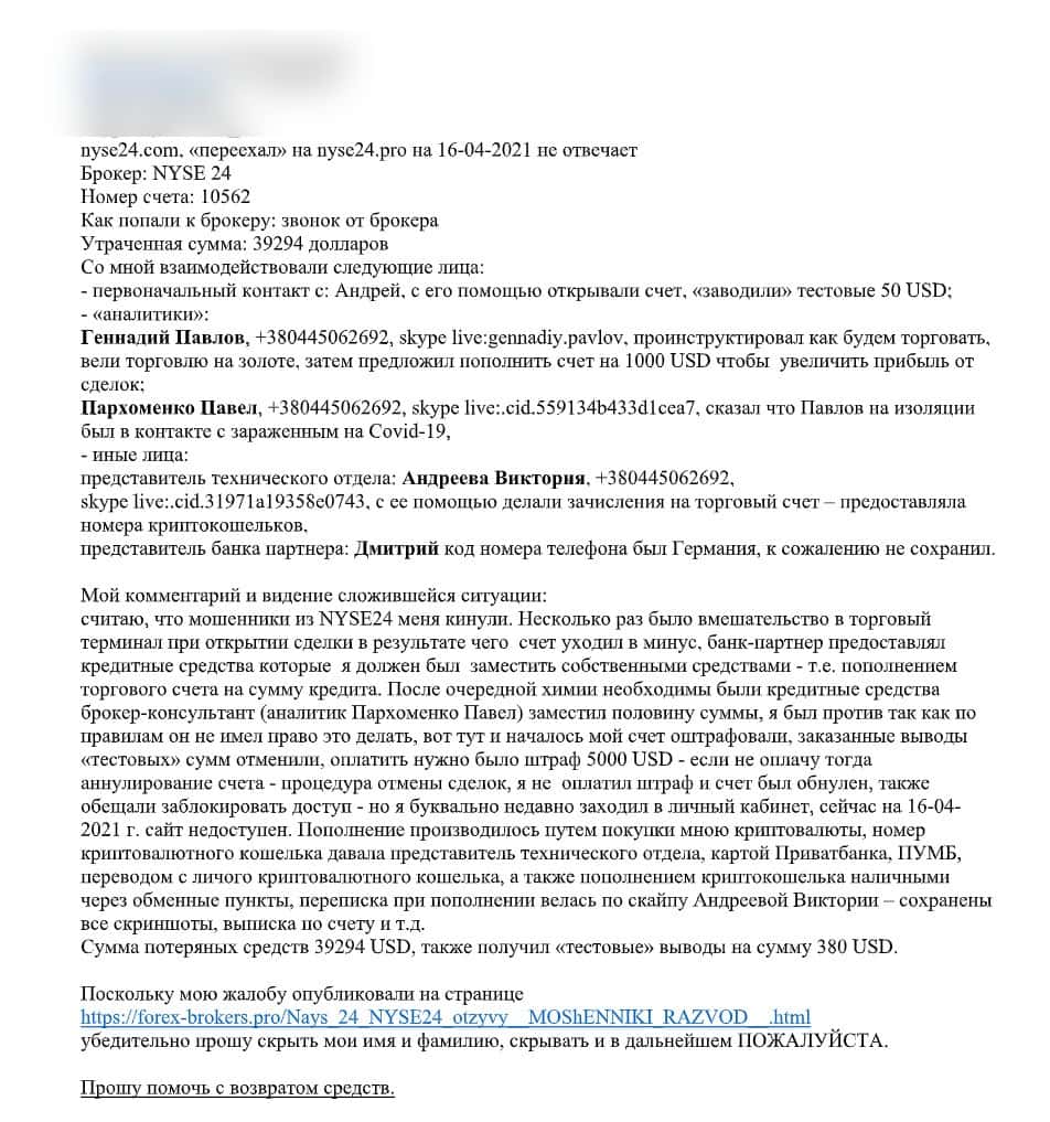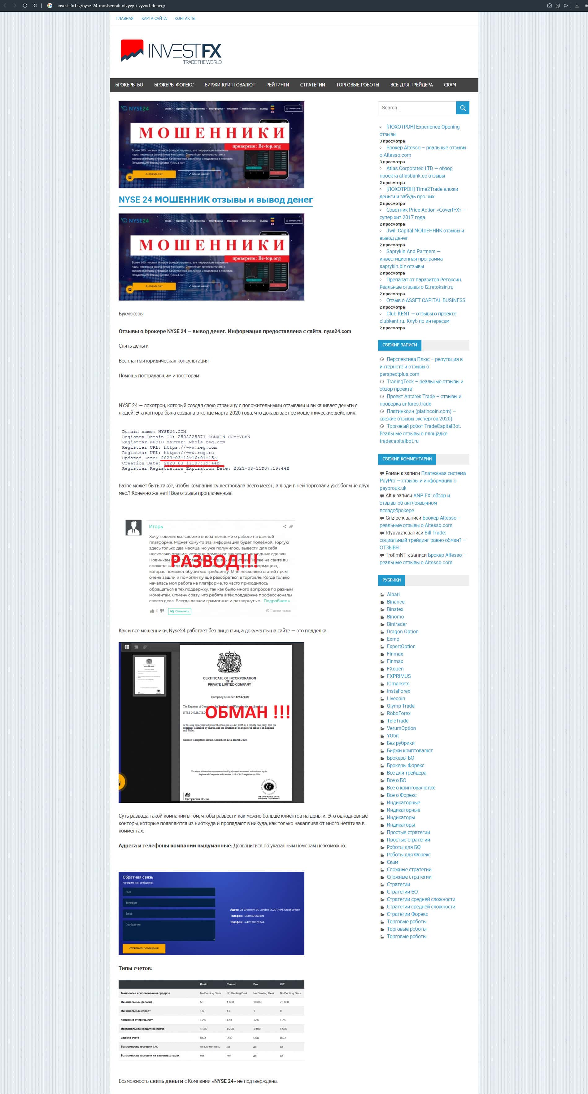 Далее вы можете ознакомиться с информацией, касательно шулерского лохотрона NYSE24, где указывают на определенные моменты, а именно почему не стоит с ними связываться.