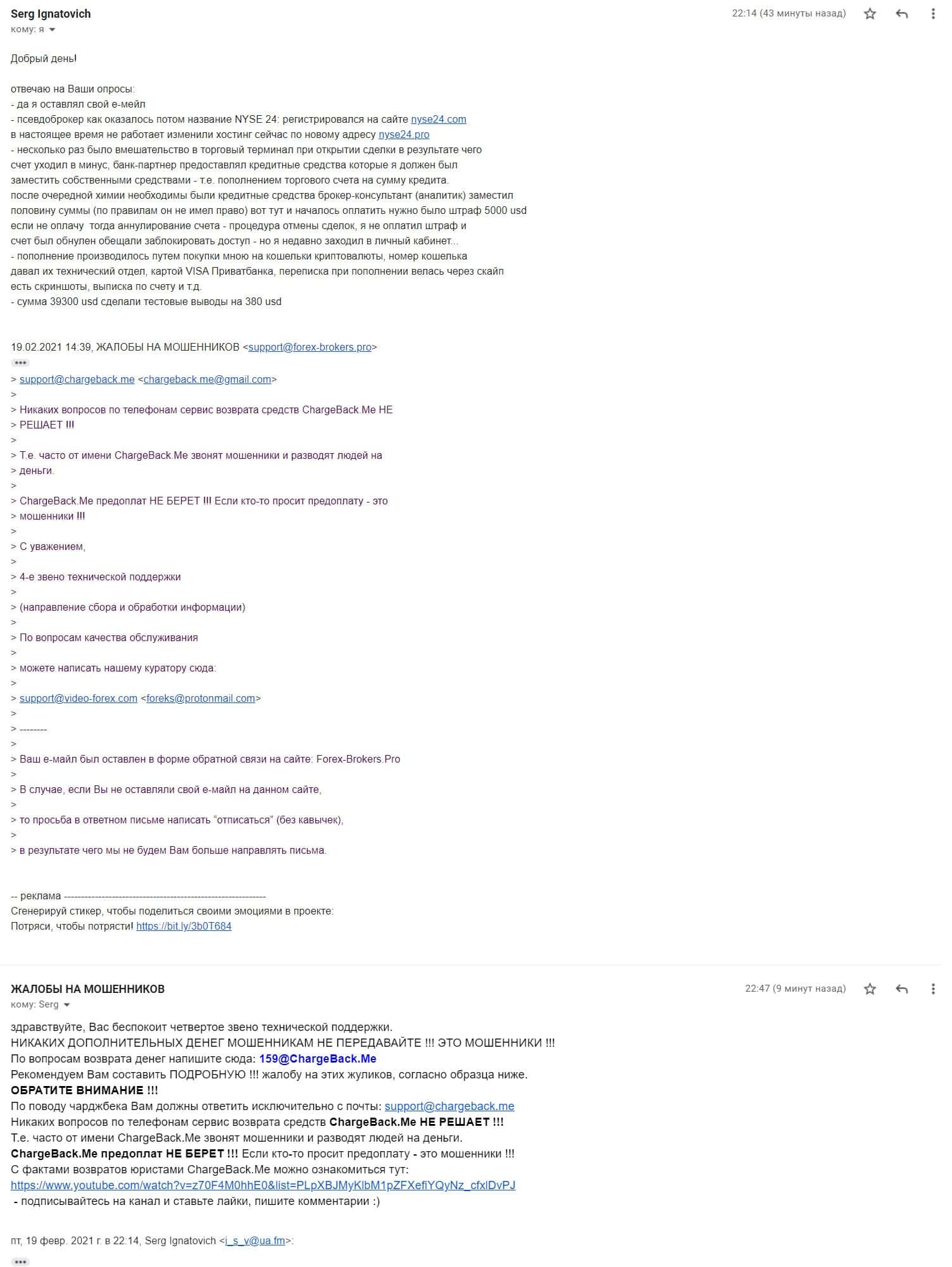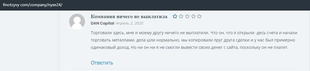 Очередной отзыв о том, что контора NYSE24 ни копейки не выплатила своему клиенту. При чем это также касается счета его друга, который открывал его вместе с ним.