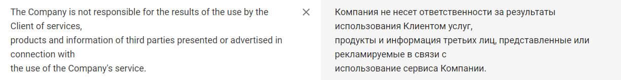 В договоре конторы Найс 24 указывается, что они ни при каких обстоятельствах не несут ответственности за прямые и косвенные убытки, которые понесет клиент, работая с ними.
