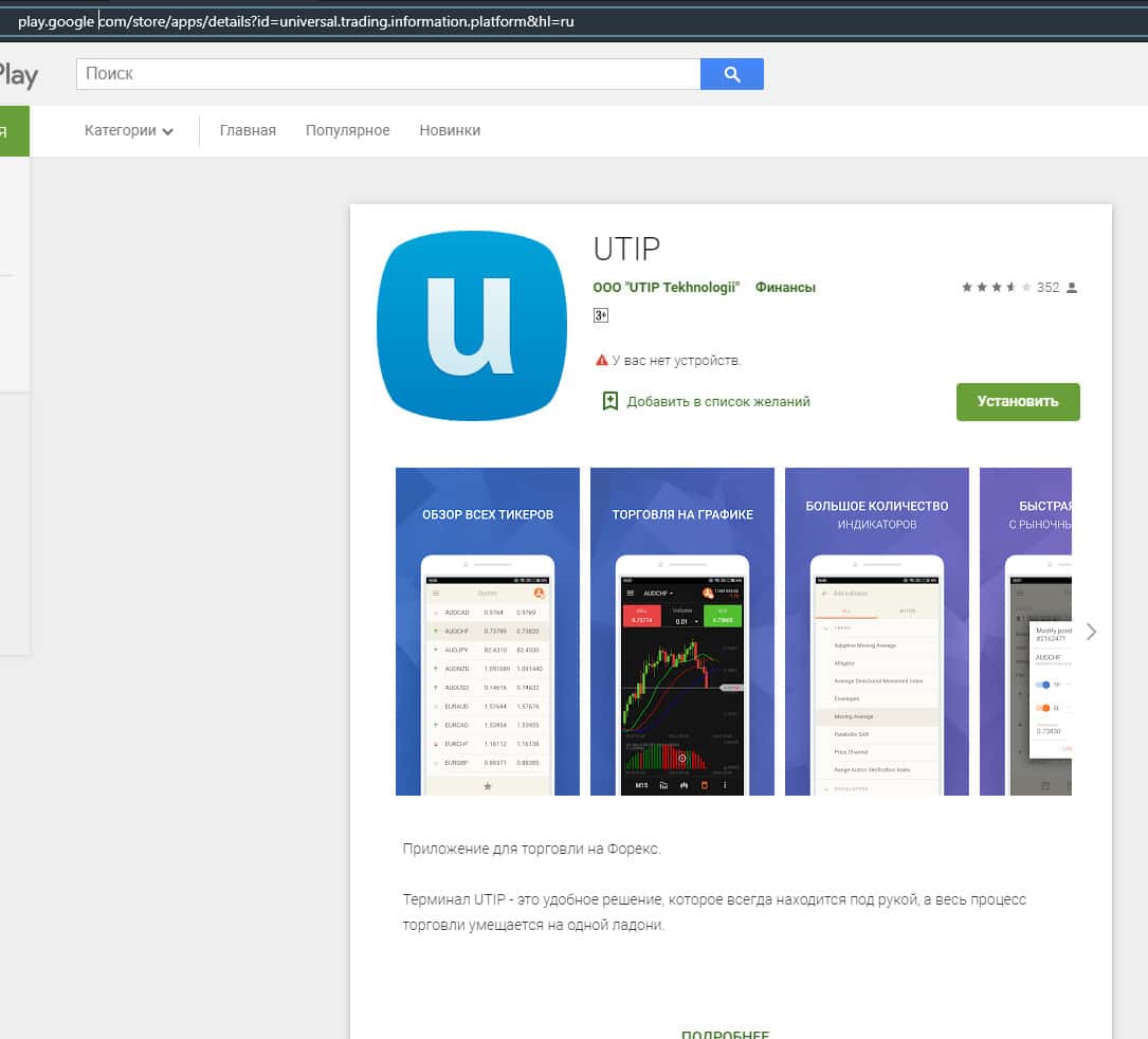 Далее представлена информация о торговой платформе конторы NYSE24, под названием UTIP, которая является мошеннической и они предлагают скачать на play google com