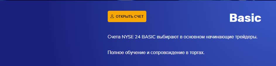 Контора NYSE24 предлагает клиентам открыть счет Basic с минимальным депозитом, но нужно понимать, что реальный форекс начинается со 100 000 долларов, а это просто кухня.