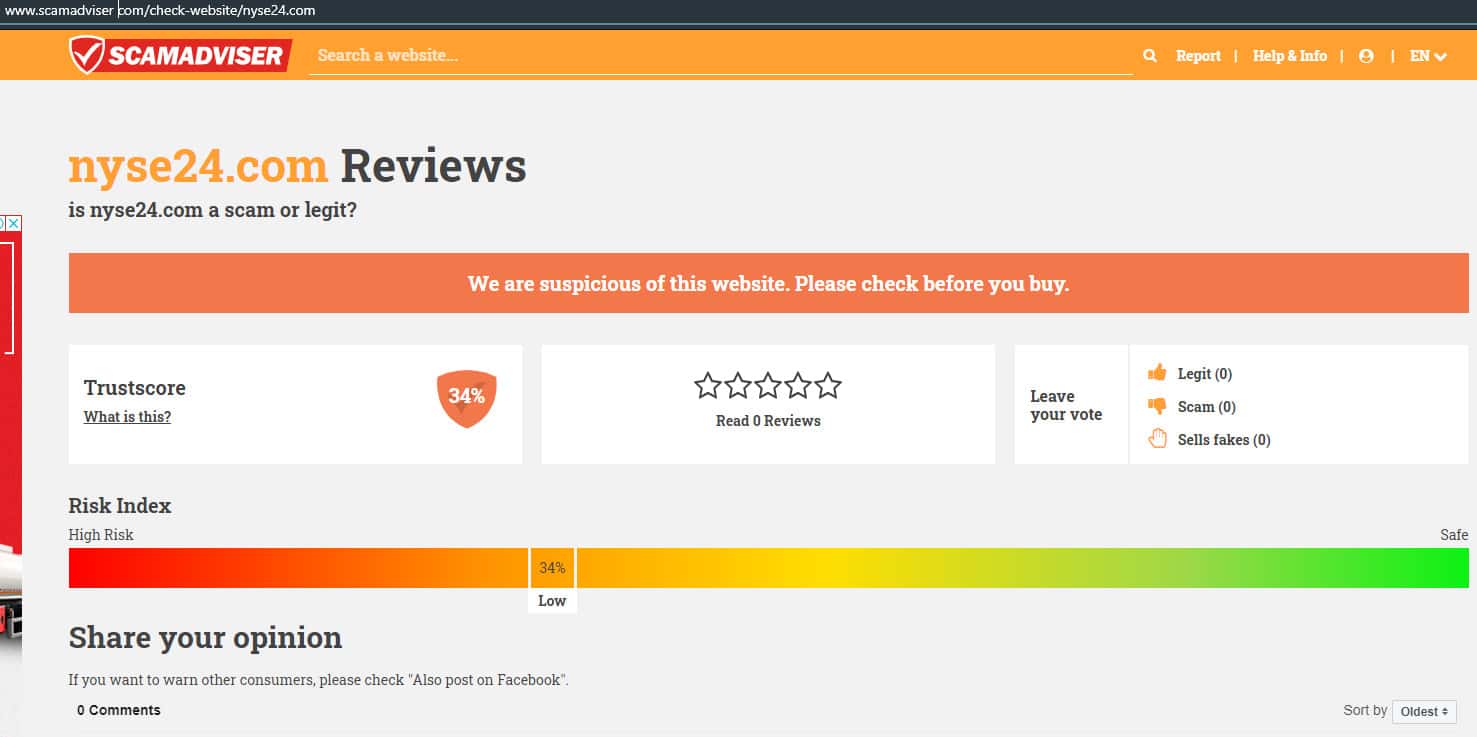 Согласно сайту скамадвайзер, контора nyse24 com не настолько популярна, да еще и есть большой риск работы с ними. Степень доверия находится на низком уровне.