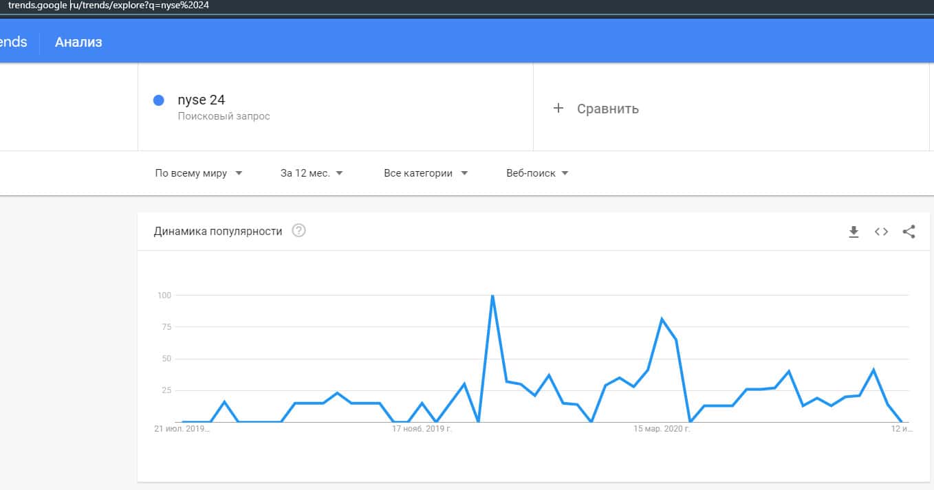 Запросы бренда "NYSE 24" довольно популярный иногда в поисковой системе Гугл, так как он связан с названием всем известной американской биржи.
