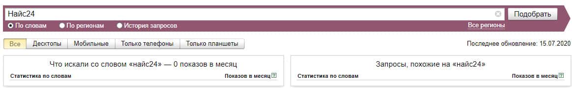 А вот бренд "Найс24" оказался вообще не популярным и ни разу не был запрошен в поисковую систему Яндекс. Это показывает реальную популярность данного лохотрона.