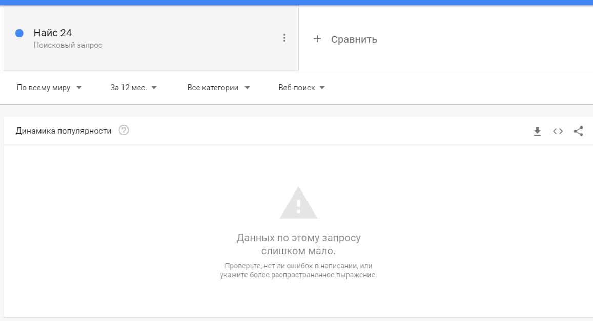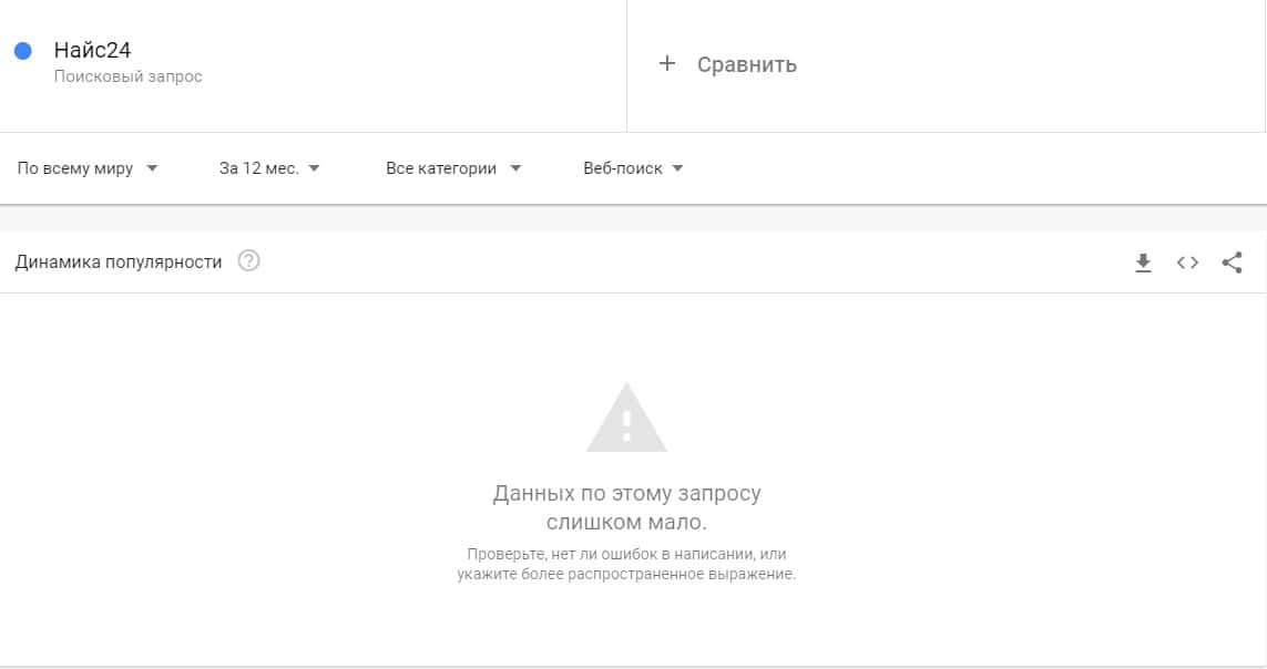 Сайт-поисковик Гугл не смог найти не единого запроса по версии бренда "Найс24", что показывает их низкую популярность в глобальной сети интернет.