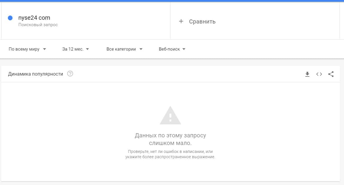 По поводу бренда "NYSE24" в поисковой системе Гугл не было найдено ни одного запроса, что показывает их скудную популярность в интернете.