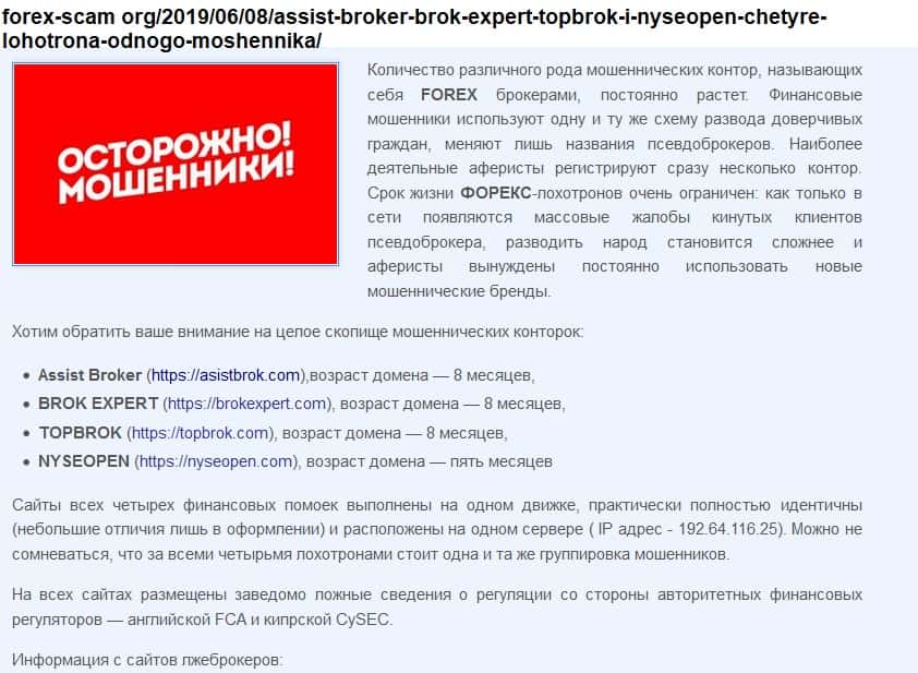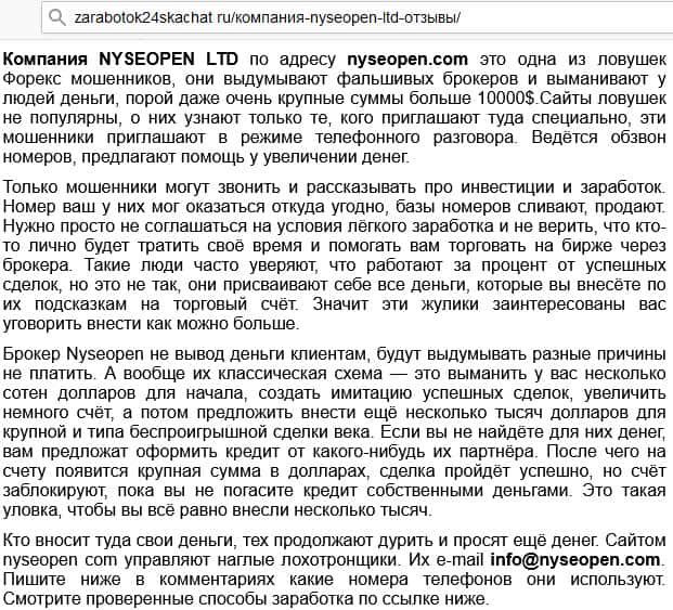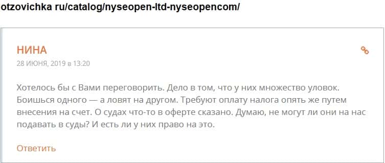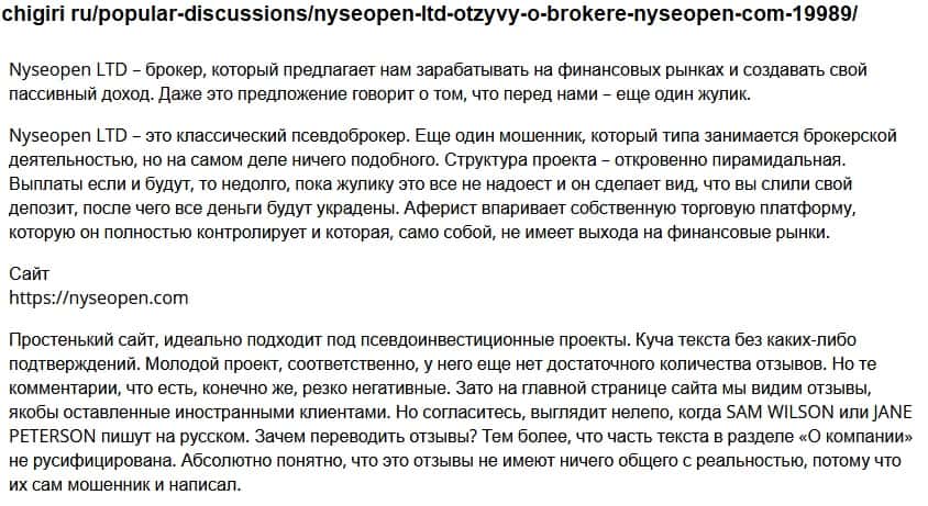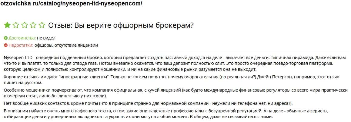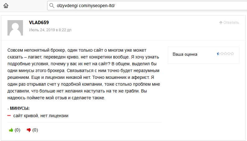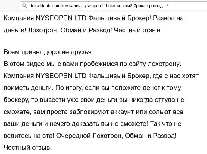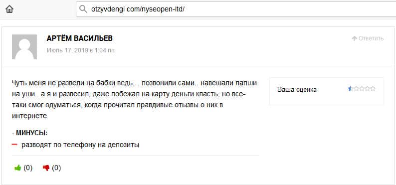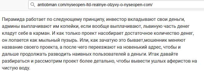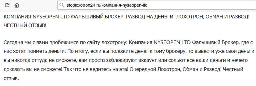 Мнение о лохотроне NyseOpen на авторитетном источнике