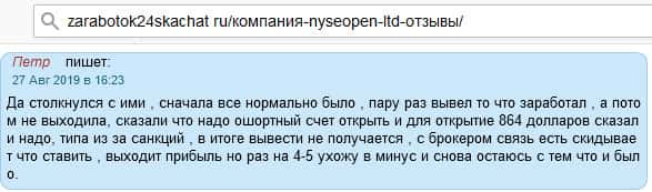- Мнение о лохотроне NyseOpen на авторитетном источнике
