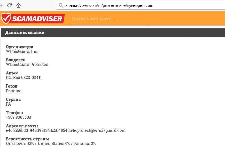 - Мошенники NyseOpen зарегистрированы в Панаме
