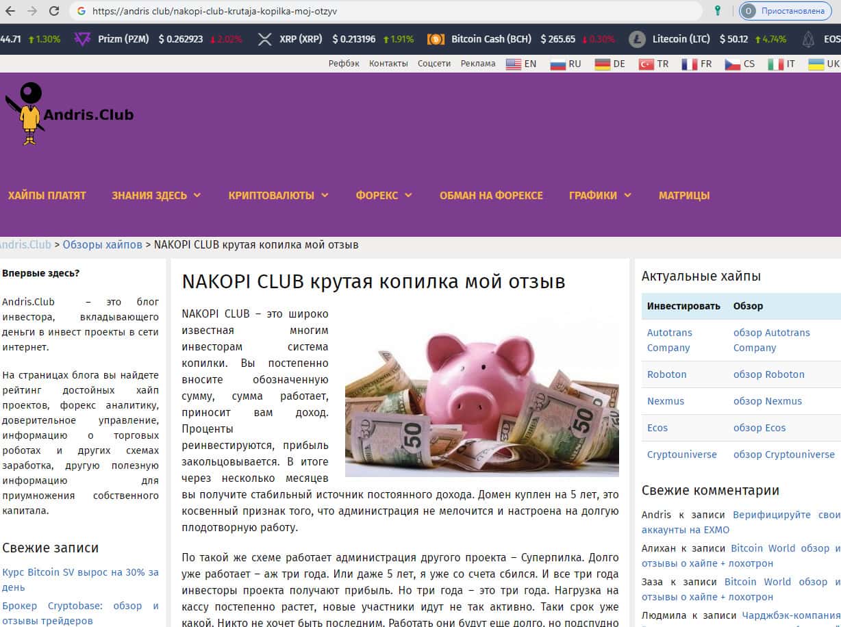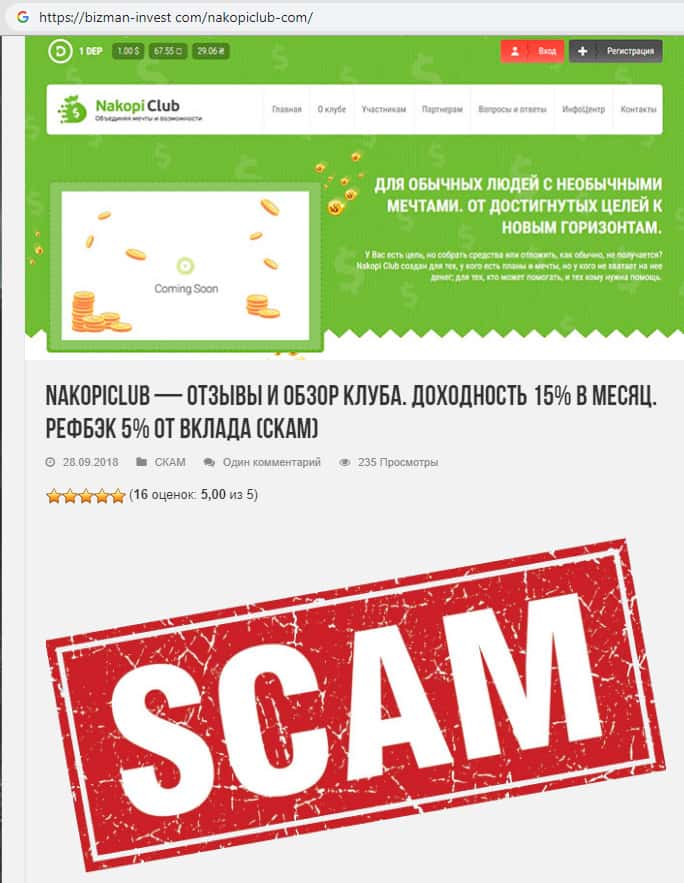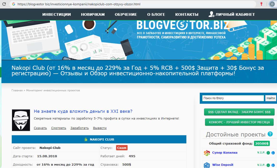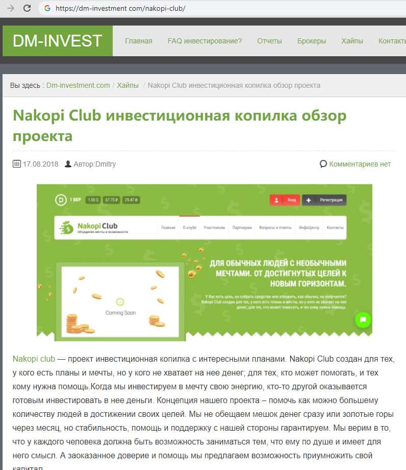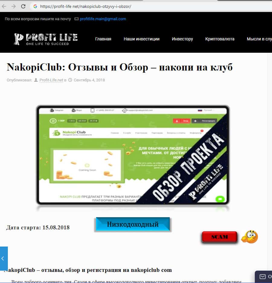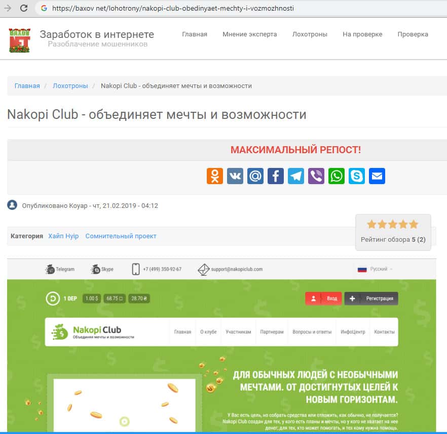 - В предчувствии скама проекта NacopiClub портал baxov net опубликовал свой обличительный обзор