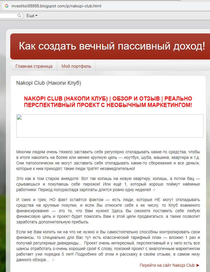 - Реклама и признание мошенничества НакопиКлуб на портале blogvestor biz