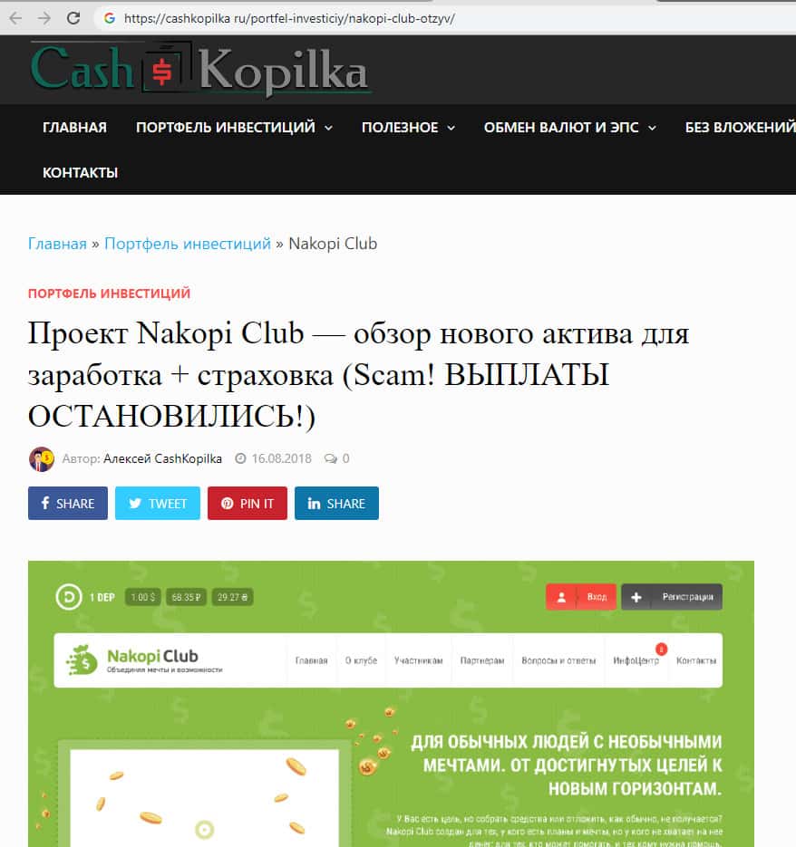 В предчувствии скама проекта NacopiClub портал baxov net опубликовал свой обличительный обзор