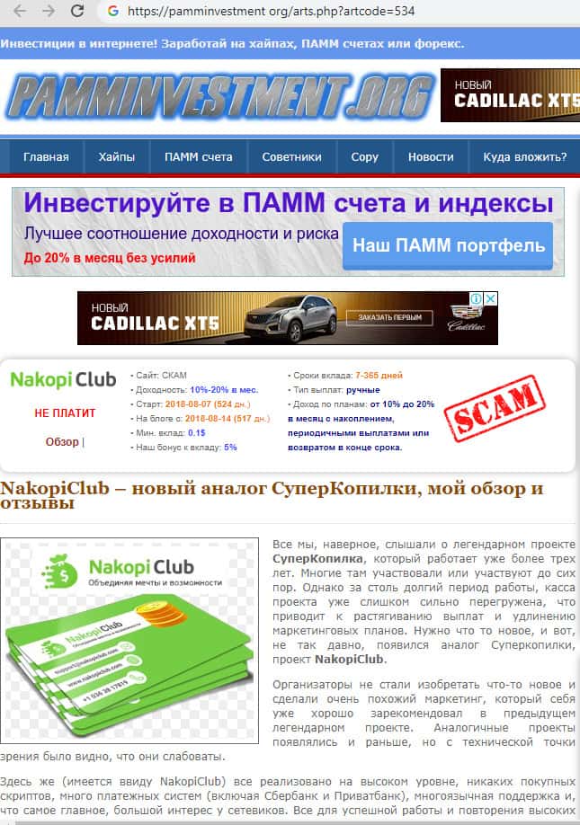 Предложение заработать на проекте НакопиКлуб с опаской о его времени скама на портале pamminvestment org