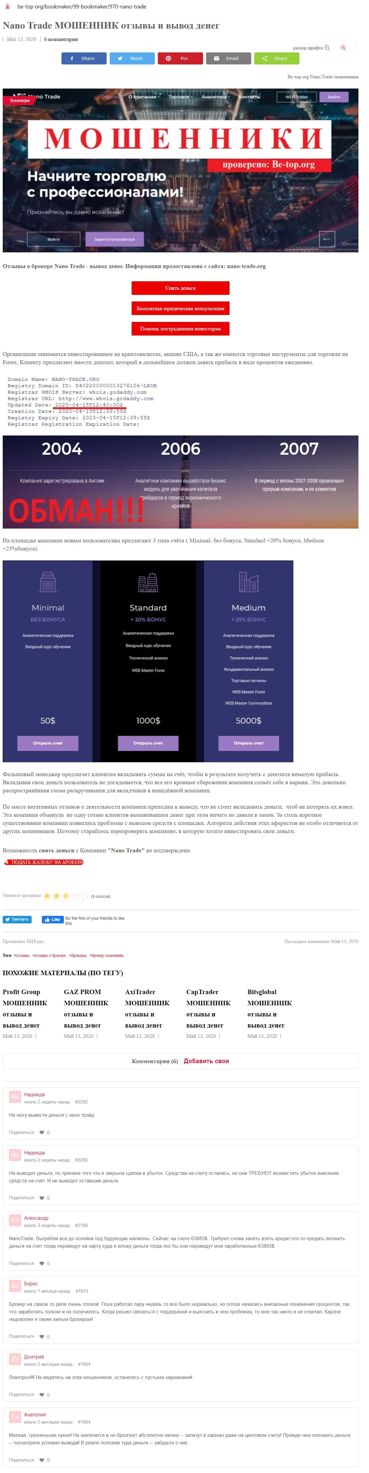 - Обзорные статьи о мошеннической конторе Нано Трейд