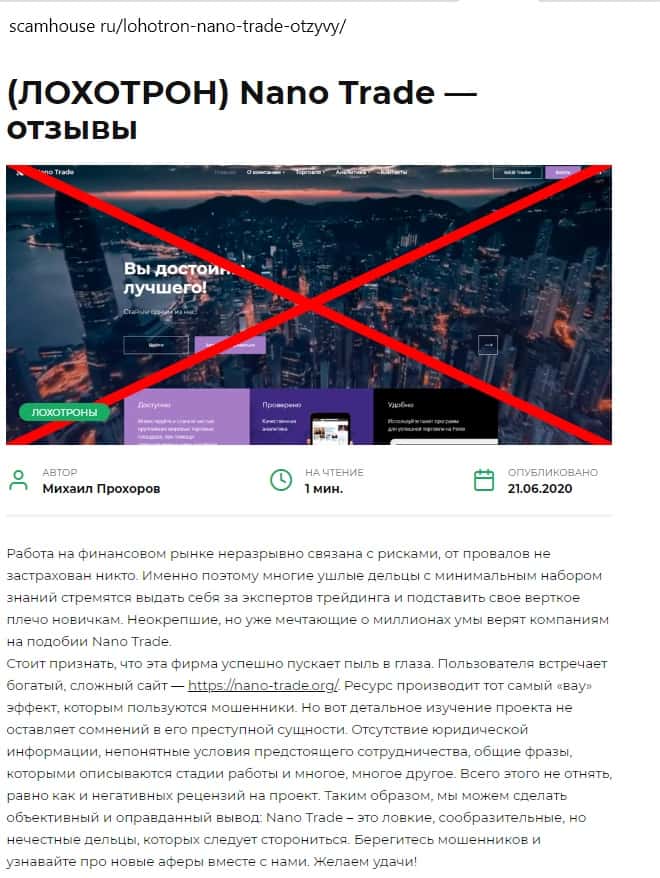 Обзорные статьи о мошеннической конторе Нано Трейд