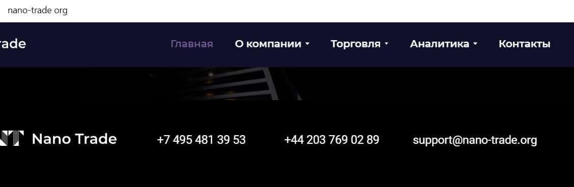 На сайте компании Нано Трейд имеются данные о том, что их офис расположен в Лондоне. Скорее всего, адрес фальшивый, но проверить это мы не можем.