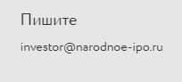 На следующем изображении можно увидеть воочию электронную почту, которую шарлатаны Народное АйПиО указали для трейдеров в разделе "Контактная информация":