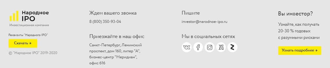 Оказывается, что контора Narodnoe-IPO Ru настолько никчемная, что у нее нет даже никакой юридической регистрации и юридического лица. В общем, это просто развод на лохов.