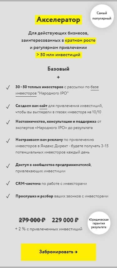Фиктивная программа работы в "Акселераторе" Народное АйПиО по привлечению инвестиций для трейдеров