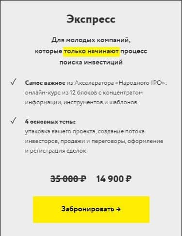 "Экспресс" - предполагает вклад пользователя в размере 14900 рублей. Ему предоставляют целый список преимуществ, чтобы новенькие вкладчики потеряли бдительность и вложились.