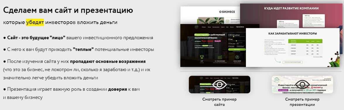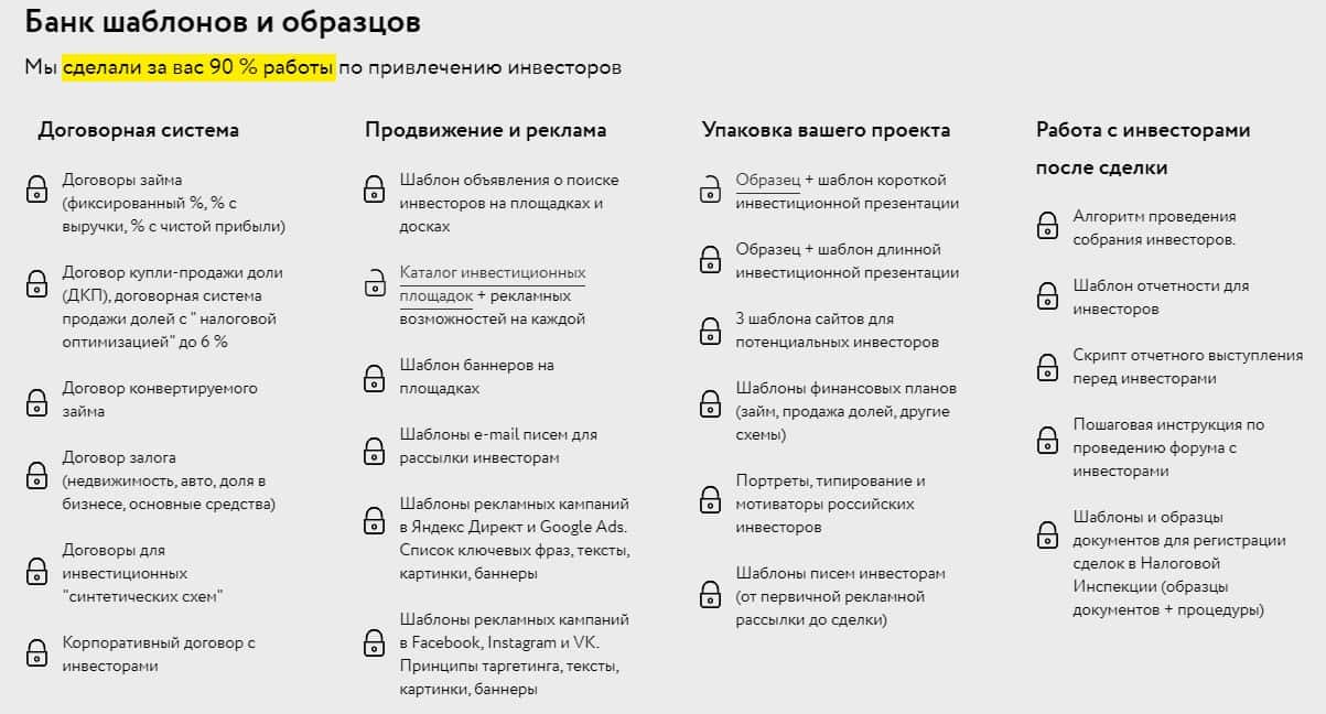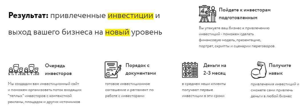 Ниже перечислены 10 шагов по привлечению инвесторов в бизнес клиента: от постановки целей бизнеса до оформления и регистрации сделок. На лицо видна афера по сбору бабла.