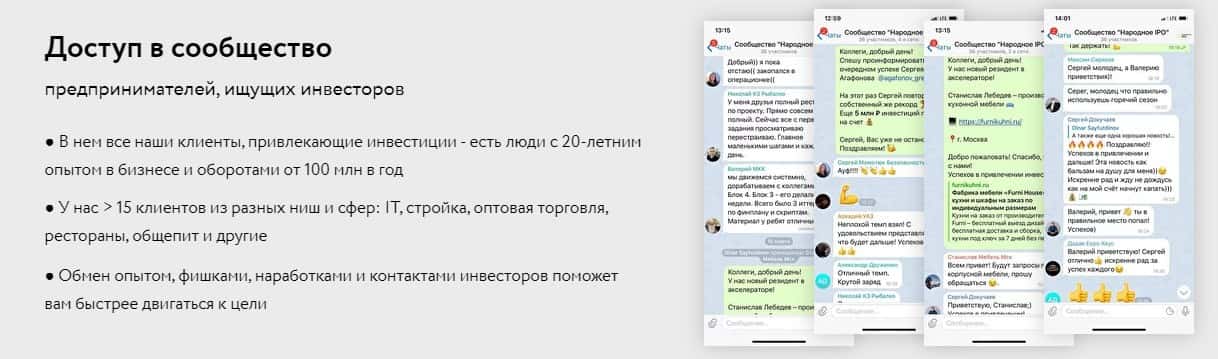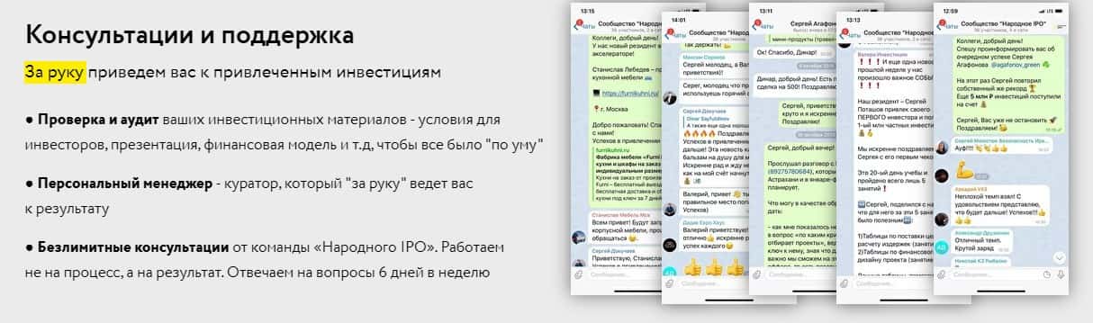 Согласно данным с портала Narodnoe-IPO Ru, клиенты будут обеспечены постоянной поддержкой и помощью в развитии бизнеса. Но вот непонятно, это плюс или минус для людей.