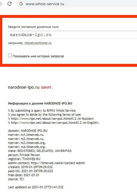- Возраст домена злодейского инвестиционного проекта Narodnoe-IPO Ru