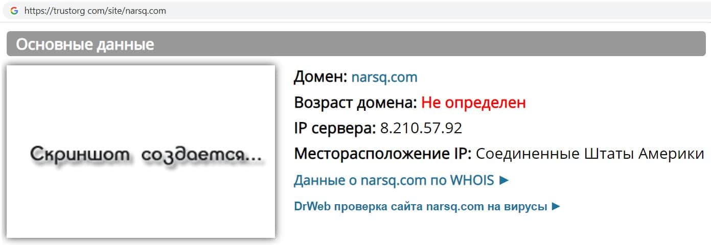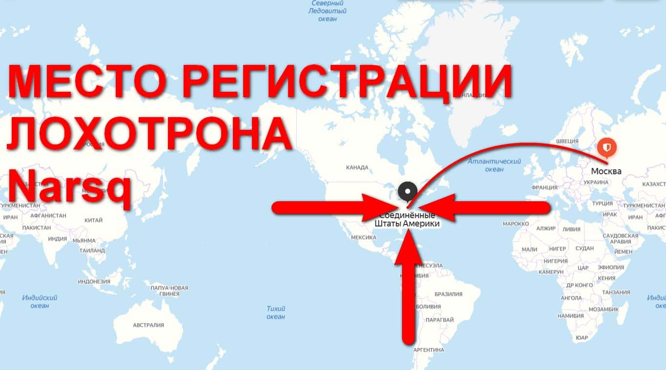 Так же финансовые разводилы Narsq указали, что зарегистрированы в США, но доверять этой информации не стоит так как мошенники часто используют фальшивые адреса.