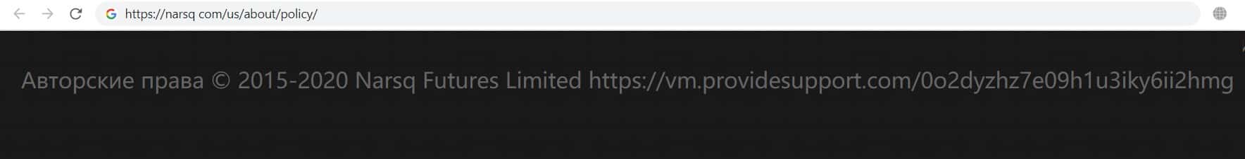 Мошенническая фирма Нарск на своём главном интернет ресурсе указала информацию о юридическом лице, которым в свою очередь является фирма Narsq Futures Limited.