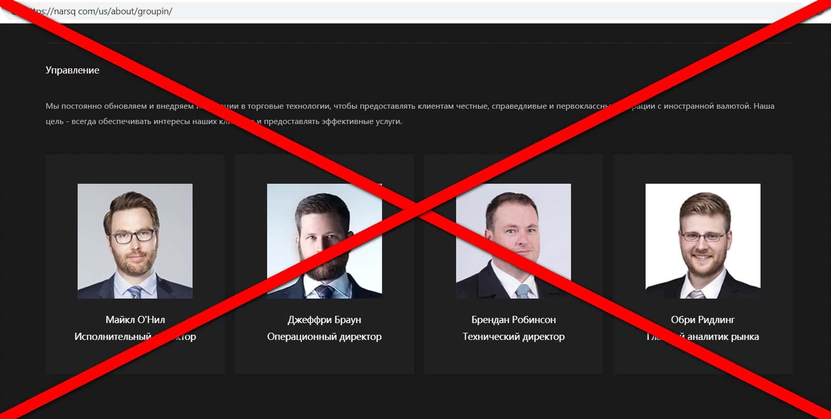 Мошенники Нарск указали на своём сайте информацию о своём руководстве, вот только вся она фальшивая, так как это фото украдены из интернет а имена выдуманные.