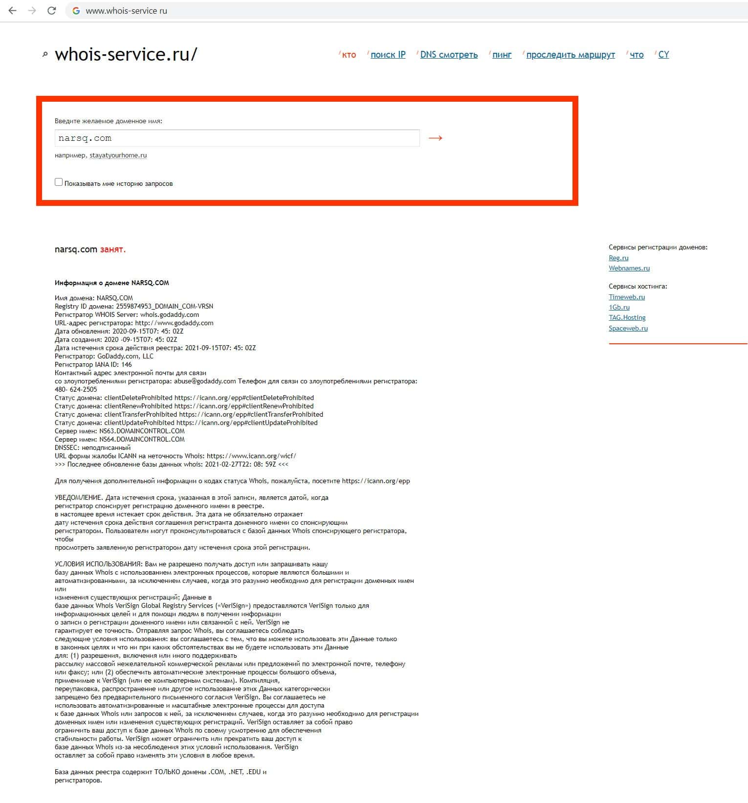 - Кому принадлежит доменный адрес фирмы мошенников Нарск?