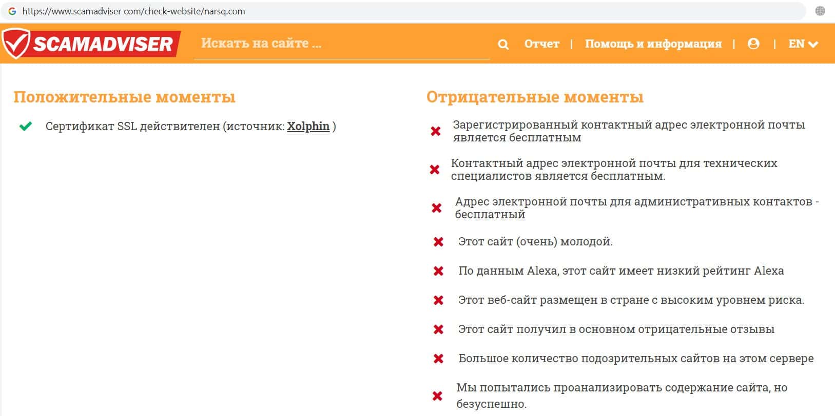 - Информация о мошеннической конторе Narsq