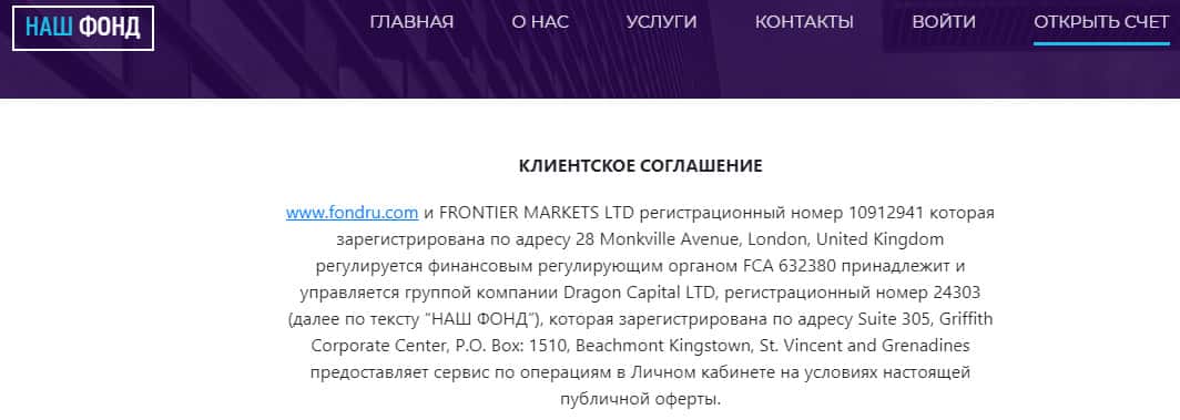 - Условия клиентского соглашения аферистов ФондРу Ком