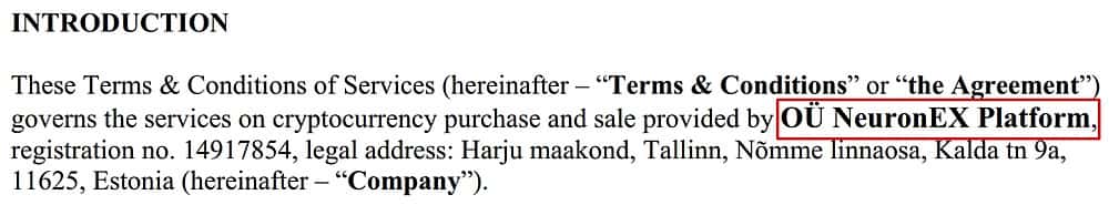Свой гнилой договор плутовская шайка Нейрон ЕХ заключает от имени некой организации OÜ NeuronEX Platform, которая видимо и является настоящим владельцем этого лохотрона.
