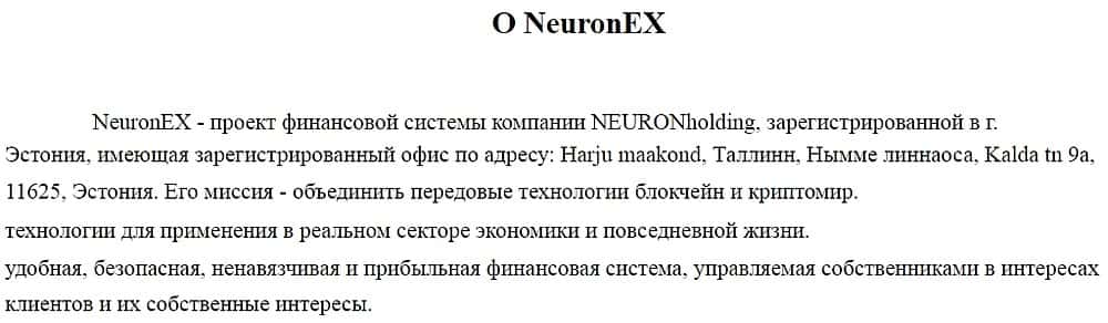 - Кто владеет липовым интернет-проектом NeuronEX?