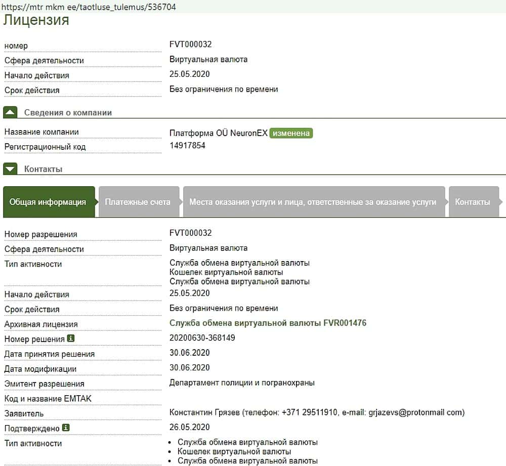 Аферисты Нейрон ЕХ якобы имеют лицензию, выданную эстонским департаментом полиции, однако, она абсолютным счетом ничего не значит, и позволяет жулью красть деньги.