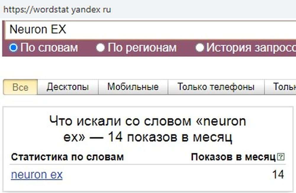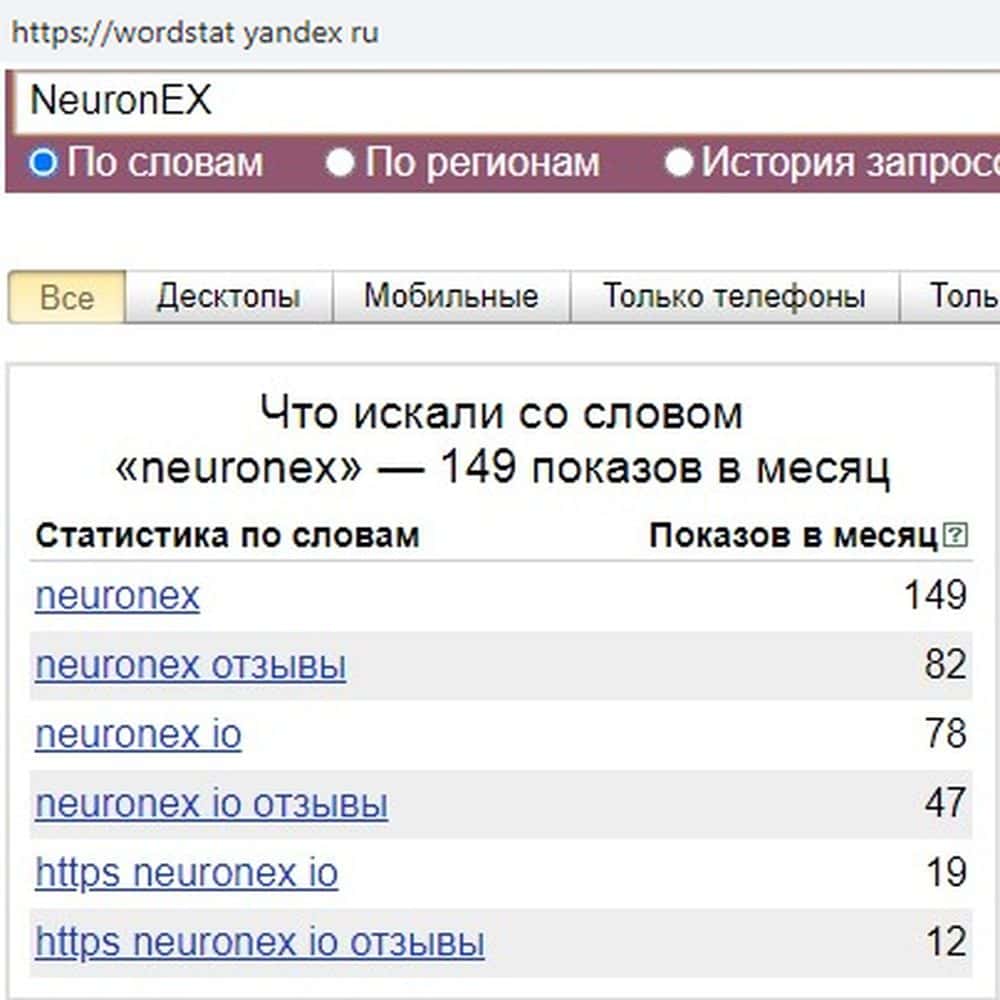 По запросу "NeuronEX" показов больше. Но здесь люди пытались найти отзывы. А в сети, к сожалению, реальных отзывов на этот новодельный лохотрон еще мало, он только появился.