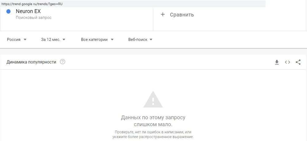 Пользователи поисковика Гугл вообще обходят кидал Нейрон ЕХ десятой стороной. Запрос "Нейрон ЕХ" никого не интересовал. Ведь сервис собирает данные за год - а шарага новенькая.
