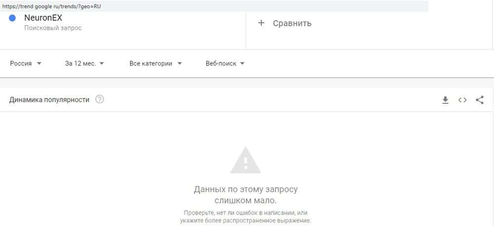 Не пользуется популярностью и запрос "NeuronEX" - снова по нолям. Людей уже довольно сложно развести на стандартных схемах, так как они много раз попадались, теперь осторожнее.