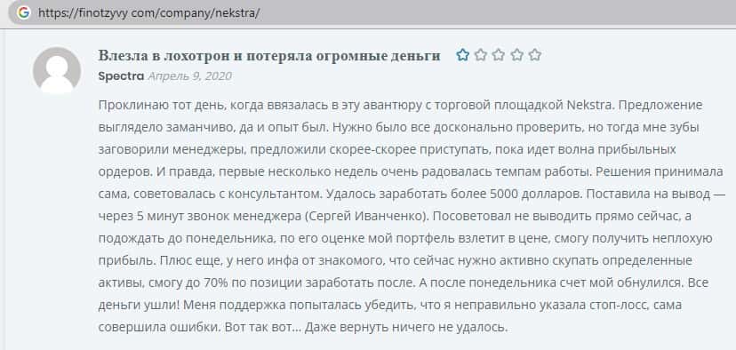 Далее на публикации предлагаем увидеть жалобу от пострадавшего клиента мошеннической компании Некстра, которая лишила автора материала вложенных денег.