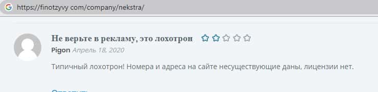 - Компания аферистов Nekstra как и следовало ожидать работает без лицензии