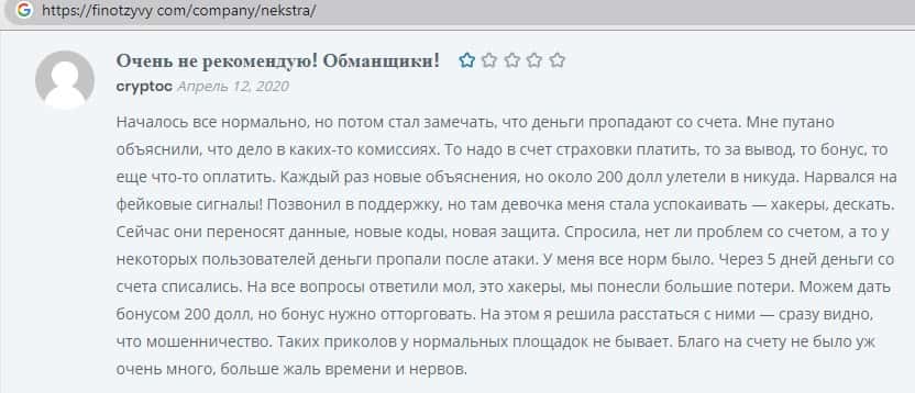 - Торговая площадка аферистов Nekstra сливает деньги трейдеров