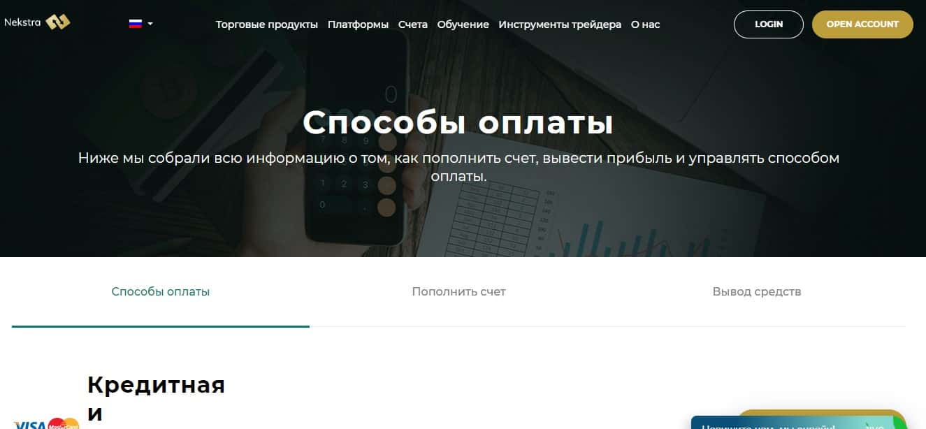 Виды оплаты торговых счетов от подвального сайта Nekstra