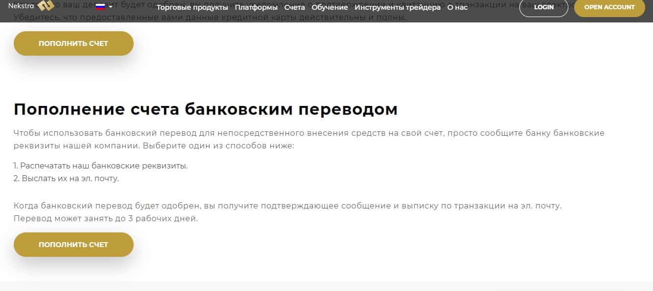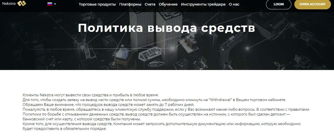 Так как самой главной проблемой компаний аферистов является не возможность вывести свои деньги. Аферисты Nekstra создали отдельный раздел посвящённый данной тематики для замыливания глаз своим трейдерам. Но это не коим образом не способствует том, чтобы трейдеры могли выводить свои деньги.