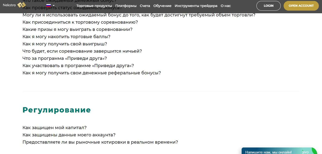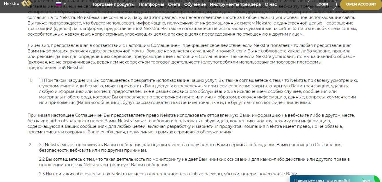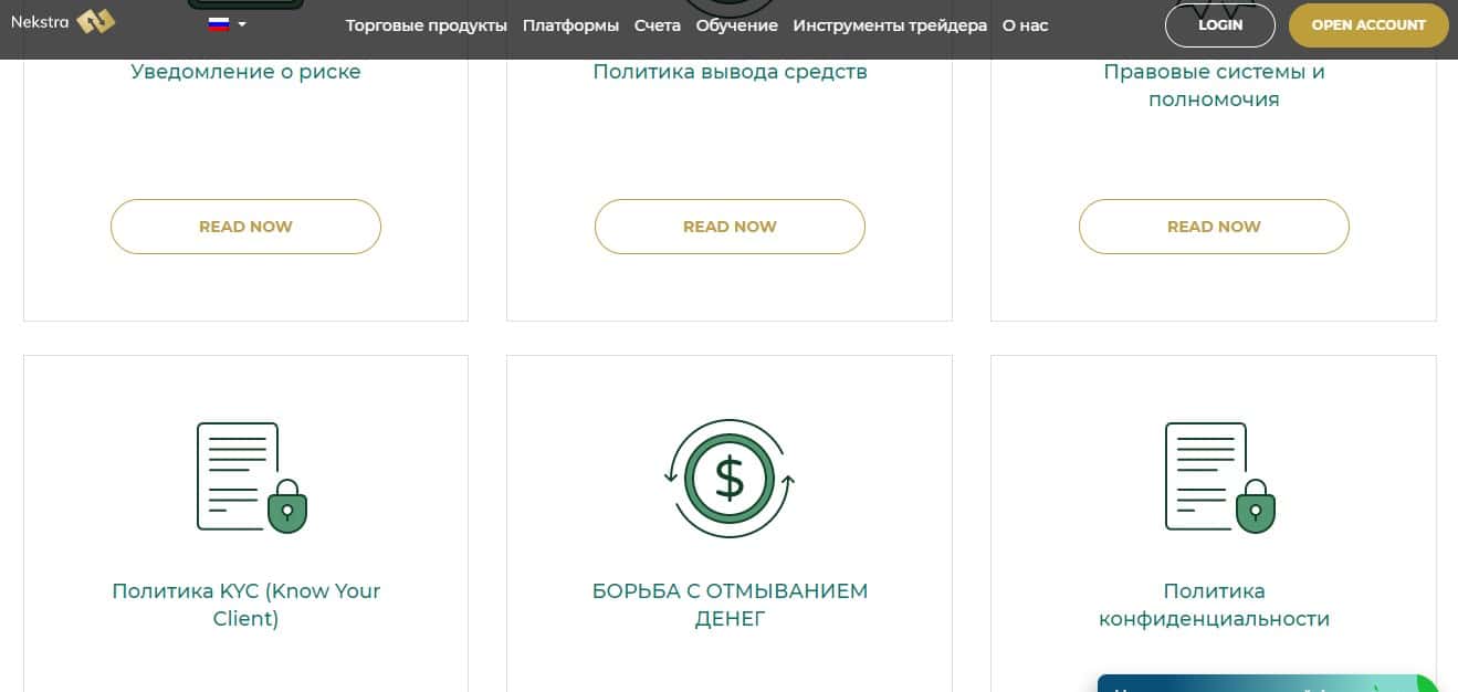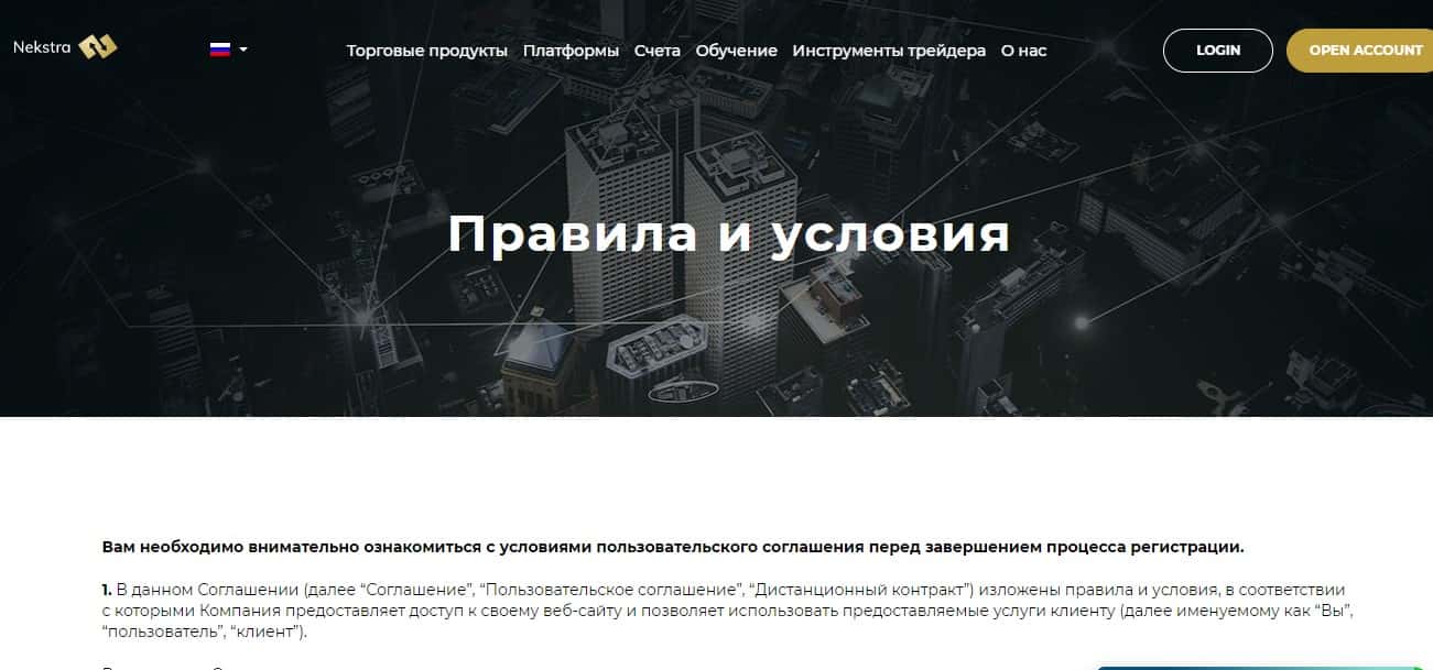Для того, чтобы не выделятся среди других брокеров которые представляют виды торговли и заработка на финансовых рынках, аферисты Nekstra также представили в конце своего сайта раздел посвященный регулированию данной организации. В котором написана достаточно стандартная информация.