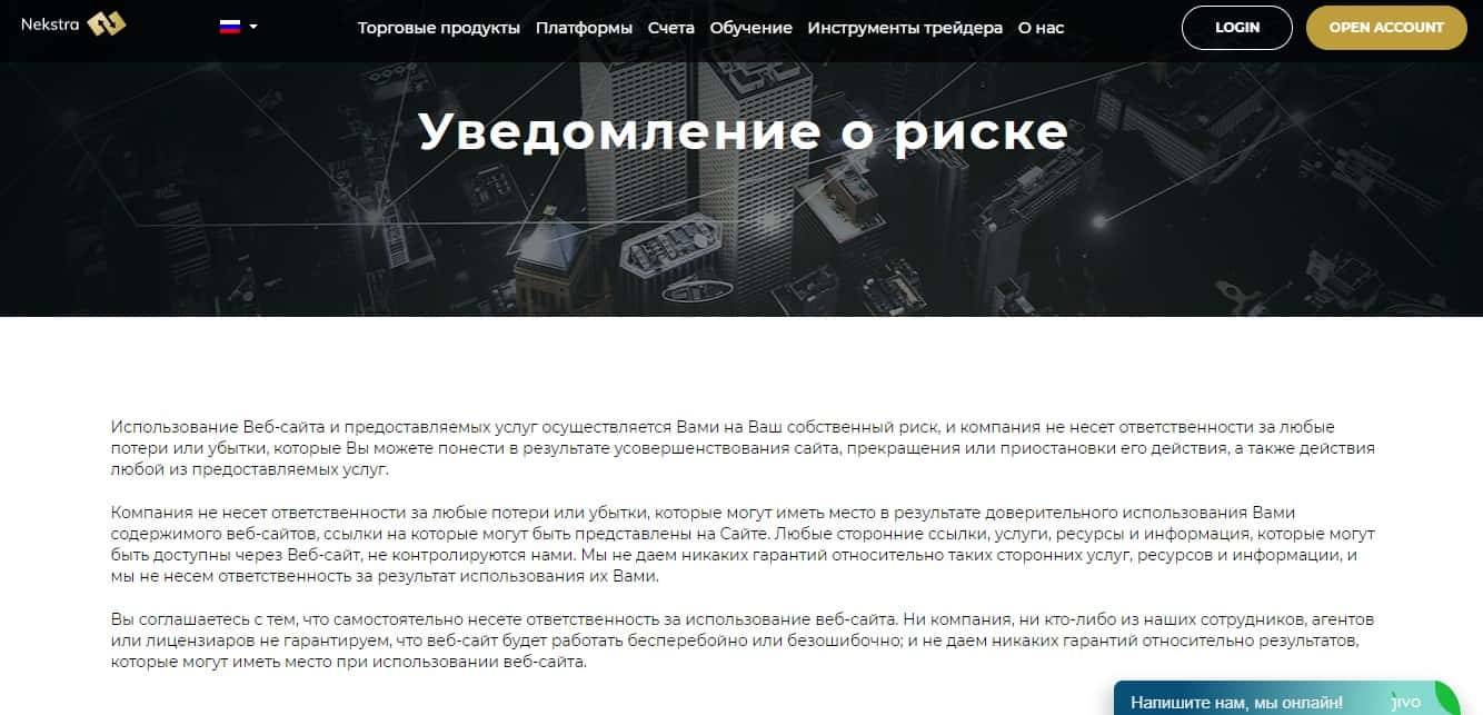 Чтобы снять с себя всю ответственность и максимально оградить себя от проблем с трейдерами, мошенники Nekstra создали раздел на своём сайте в котором указали, что все, что происходит с торговым счетом клиентов, виноваты сами клиенты и, что в любой ситуации лохотрон Некстра может менять свои правила.