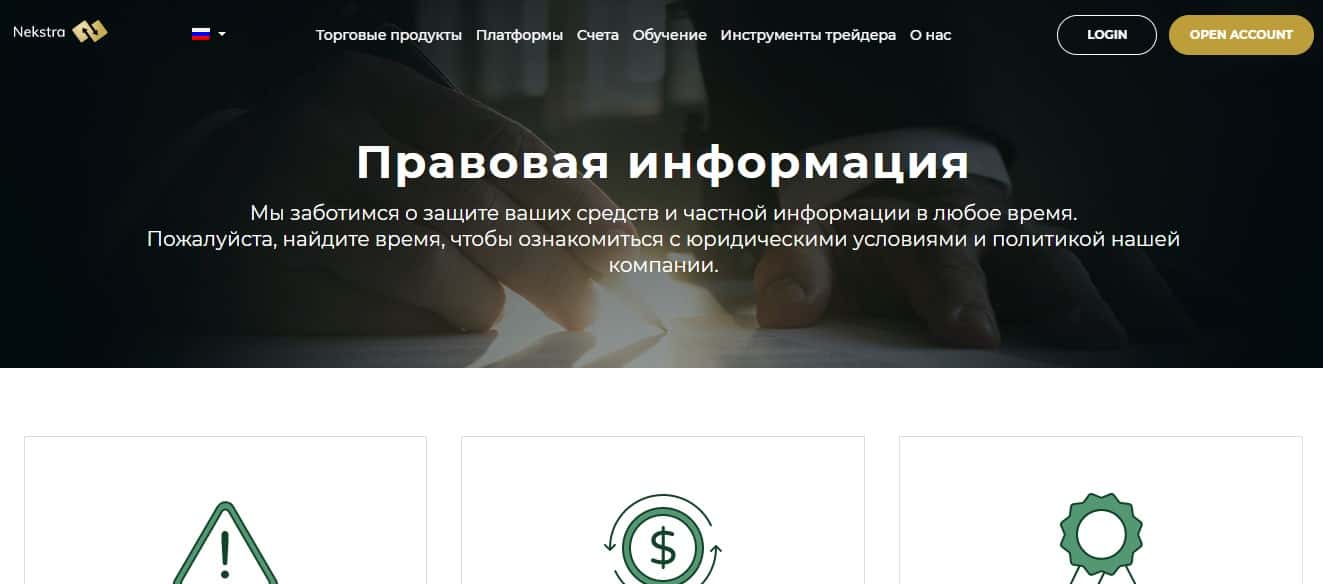 В данном разделе мошенники Некстра разместили информацию которая не как не может претендовать на правовую, единственное, что она несёт в себе так это информацию исключительно ознакомительного характера, для привлечения большей базы новых трейдеров которые будут нести им свои деньги.