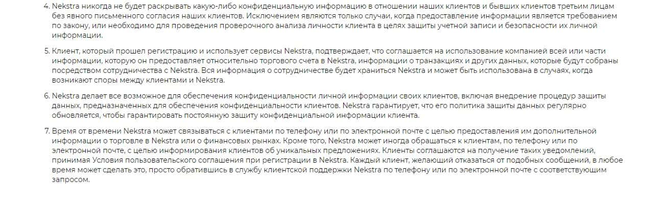 Более стандартной и предсказуемой политики конфиденциальности и не возможно придумать, такое впечатление, что все сайты занимающиеся аферой как и лохотрон Nekstra, не делают свою а просто банально копируют с интернета и добавляют себе на сайт под предлогом, что это исключительно их политика.